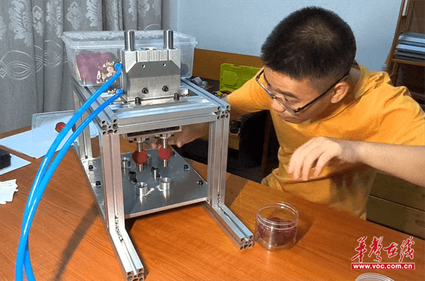 王正根深感兴奋,接连四个通宵,用游标卡尺重复测量6000余次,对3000多颗杨梅样本外径,果核的三个方向直径,进行了测量统计。用筷子捅、用吸管捅、用勺柄挖、用气嘴喷……王正根尝试了N种去核方式。他研究着杨梅鲜果物理特质和几何参数,并设计制造了去核试验台。